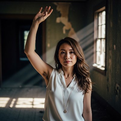 【AI腋毛画像】廃屋で佇むAI美女の腋毛