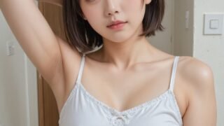 【AIおっぱい画像】AI美女のシャツの間から見えるおっぱいの谷間