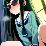 【エロ画像】AI_おしっこ_深緑ロングに黒サングラス、セーラー服の謎